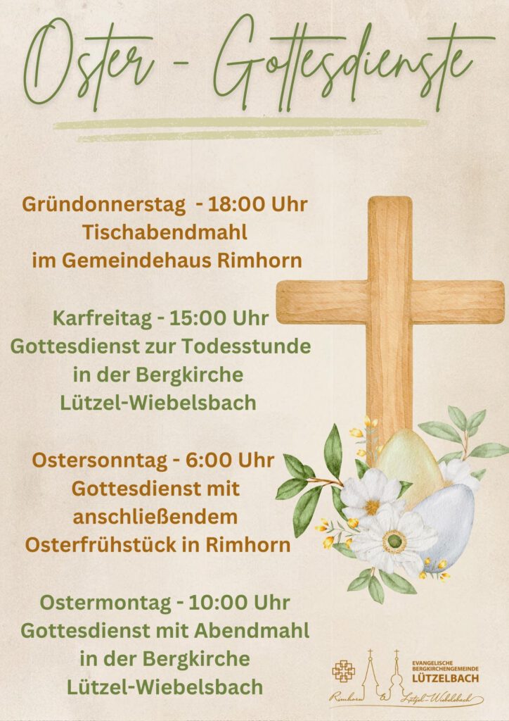 10:00 Uhr Gottesdienst mit Abendmahl in der Kirche Lützel-Wiebelsbach