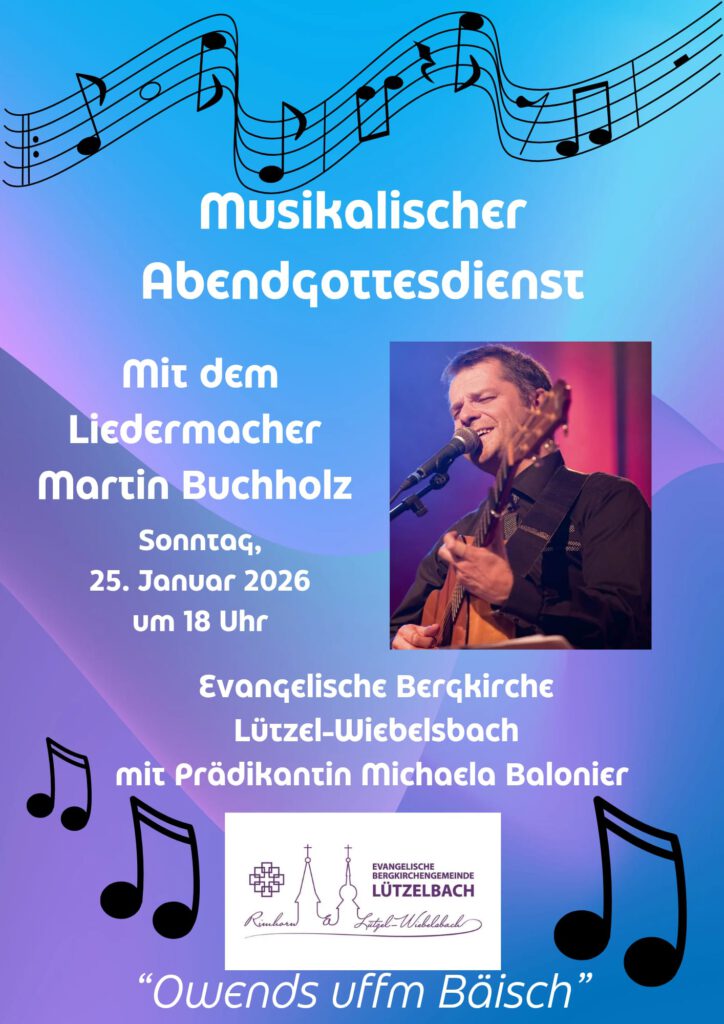 Sonntag, 25. Januar, 3. Sonntag nach Epiphanias Wochenspruch: Lukas 13,29 18:00 Uhr Musikalischer Abendgottesdienst mit Liedermacher Martin Buchholz (Dekan Carsten Stein) in der Kirche Lützel-Wiebelsbach
